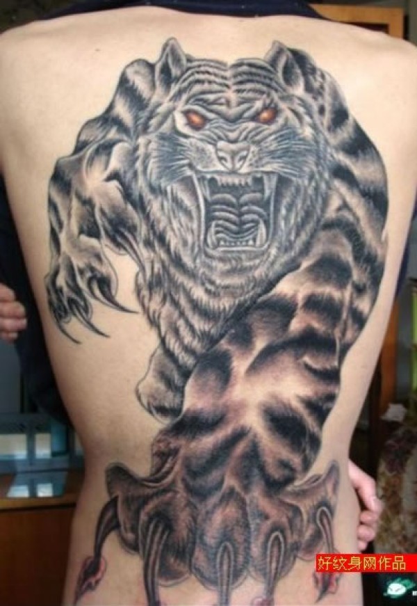 满后背虎啸纹身图,纹身作品视觉盛宴素色奔腾_后背纹身图案大全_纹身图吧