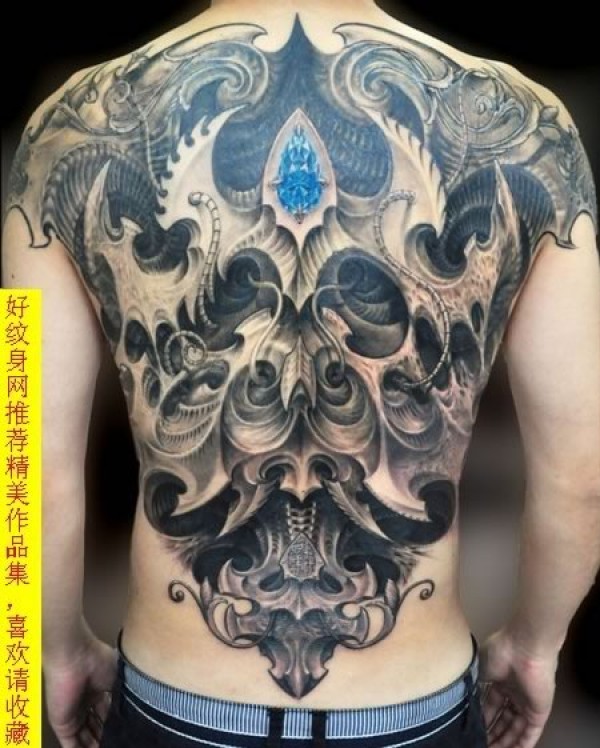 满后背抽象写意图案纹身纹身图案层次感非常强_后背纹身图案大全_纹身图吧