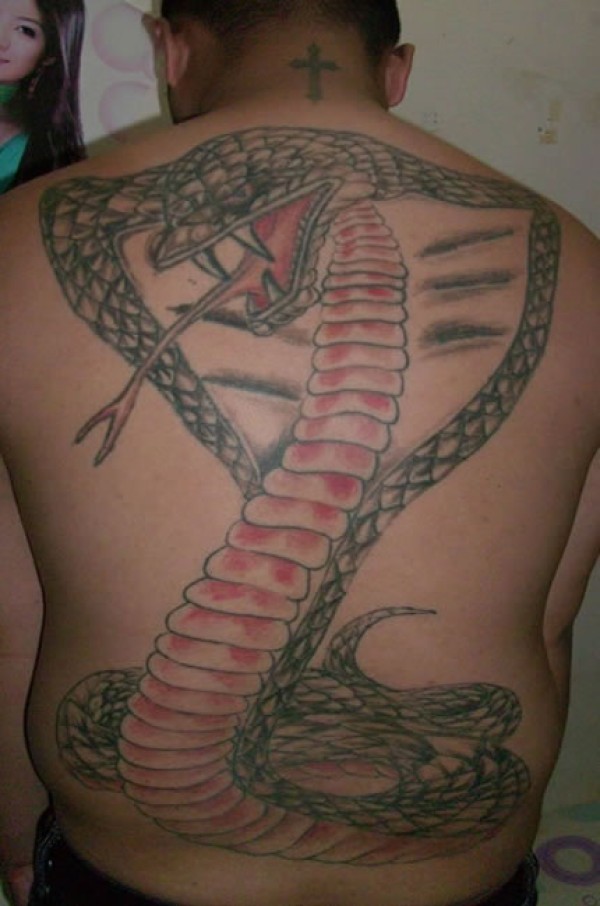 后背各种款式的毒蛇纹身图覆盖面积较大的蛇图_后背纹身图案大全_纹身图吧