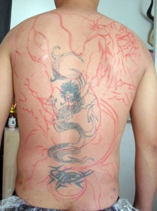 纹身遮盖大龙盖小龙说实话,原先的小龙纹身_后背纹身图案大全_纹身图吧