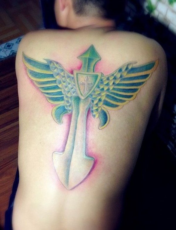 后背各种翅膀图案纹身欣赏宝剑加翅膀图案34.j_后背纹身图案大全_纹身图吧