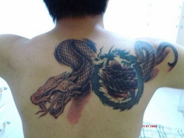 两款后背上半部纹身图案欣赏龙蛇交错图案_后背纹身图案大全_纹身图吧
