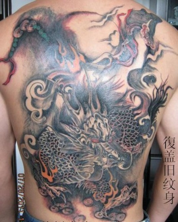 新版深色龙纹身覆盖旧纹身图当一款纹身因为年_后背纹身图案大全_纹身图吧