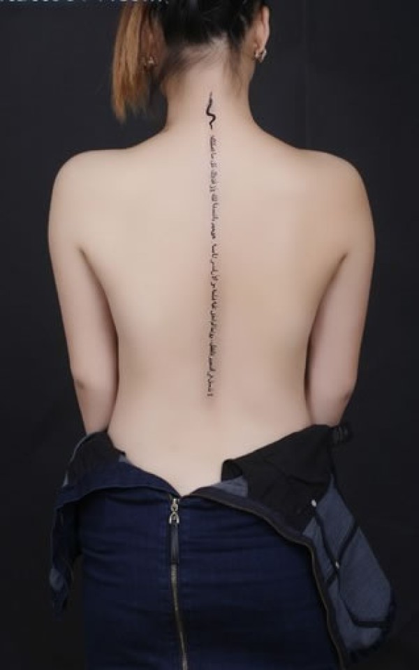 不同肤色后背上的字体纹身图雪白后背中心线上_后背纹身图案大全_纹身图吧