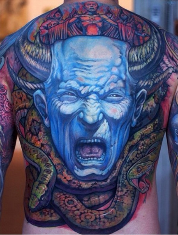 满后背犄角魔王与巨蟒图案纹身是什么把犄角魔_后背纹身图案大全_纹身图吧