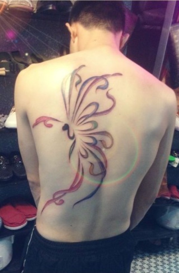后背流云彩蝶图案纹身很少见男生会选择这样柔_后背纹身图案大全_纹身图吧
