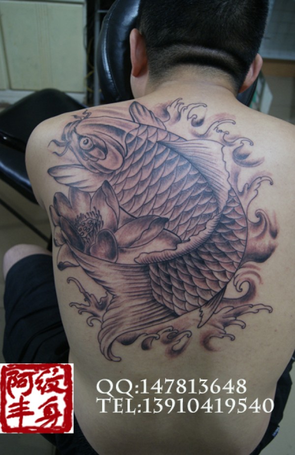 后背沙红鱼纹身,阿丰纹身作品鲤鱼是吉祥物哦_后背纹身图案大全_纹身图吧