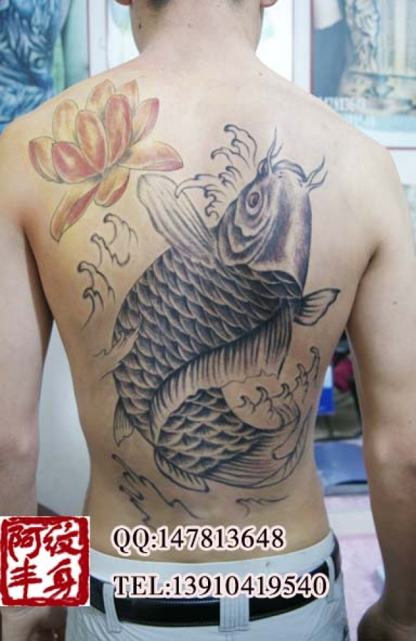 招财鲤鱼纹身图这样的纹身在以前的壁画中很常_后背纹身图案大全_纹身图吧