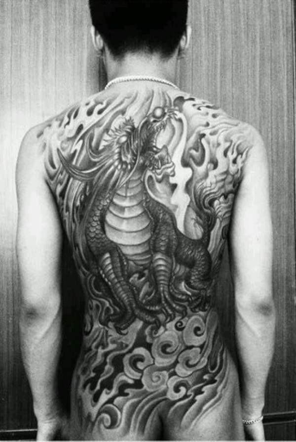 满后背火焰纹神兽纹身图案纹身里边的神兽是龙_后背纹身图案大全_纹身图吧