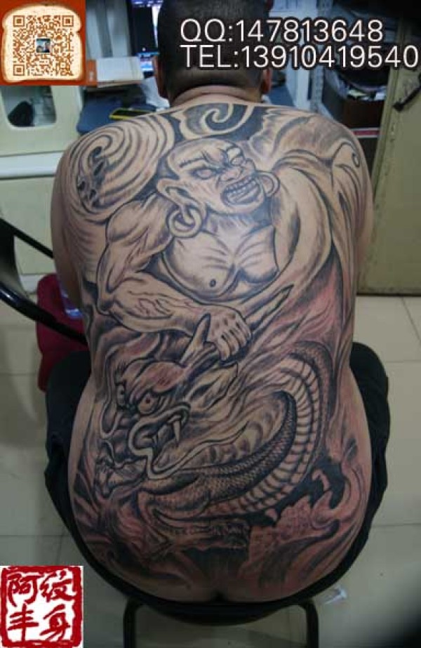 满背神话人物纹身图案这纹身的神话人物是降龙_后背纹身图案大全_纹身图吧