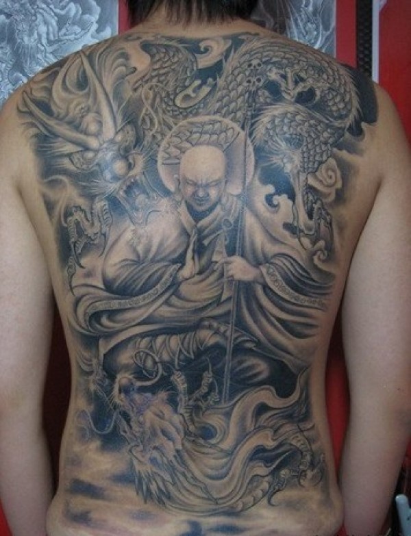 后背上的圣僧与龙纹身图案这款纹身看起来都有_后背纹身图案大全_纹身图吧
