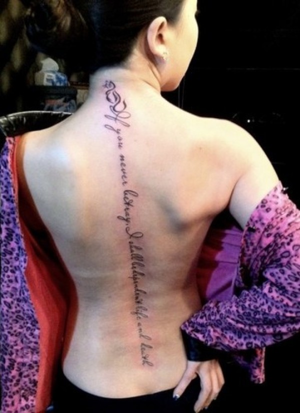 女生后背中心线上的字母格言纹身把自己想说的_后背纹身图案大全_纹身图吧