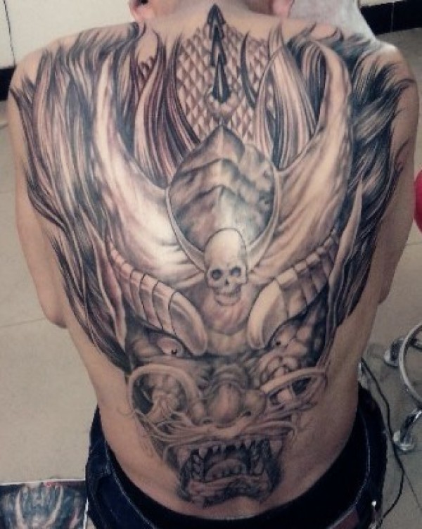 后背巨型的龙头纹身这样大尺寸的龙头纹身是不_后背纹身图案大全_纹身图吧