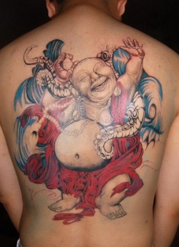 弥勒佛纹身,这纹身给人的感觉就喜气纹这个图_后背纹身图案大全_纹身图吧