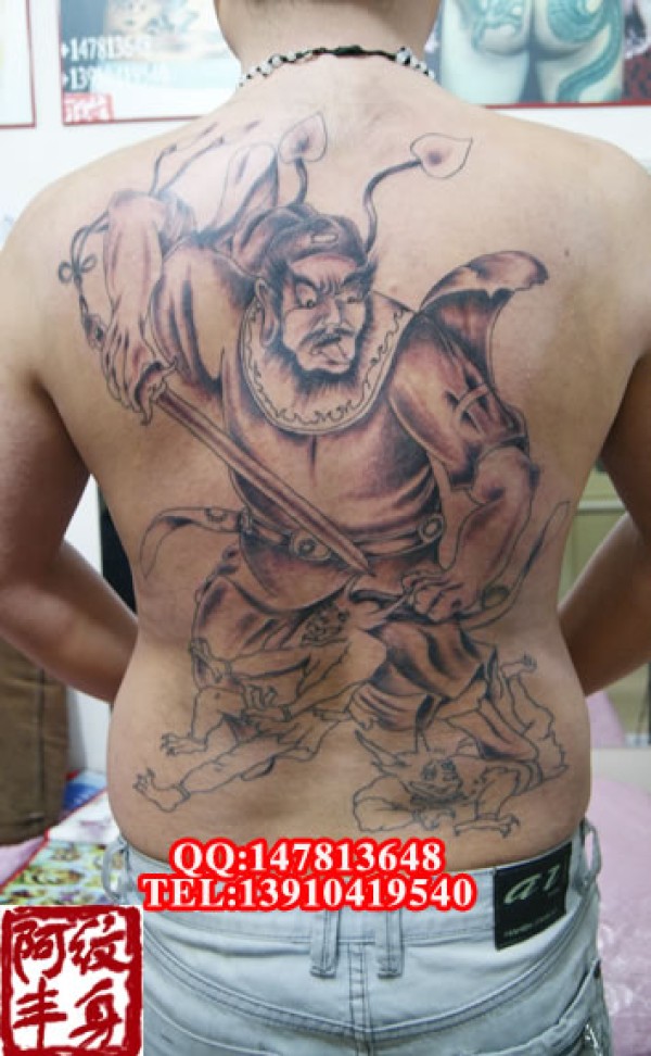 后背神话人物钟馗纹身,有这个邪气都不敢沾边_后背纹身图案大全_纹身图吧