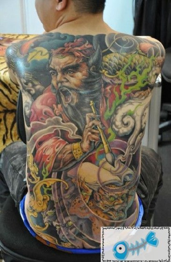 后背色彩怒神纹身,手里是不是拿的生死笔_后背纹身图案大全_纹身图吧