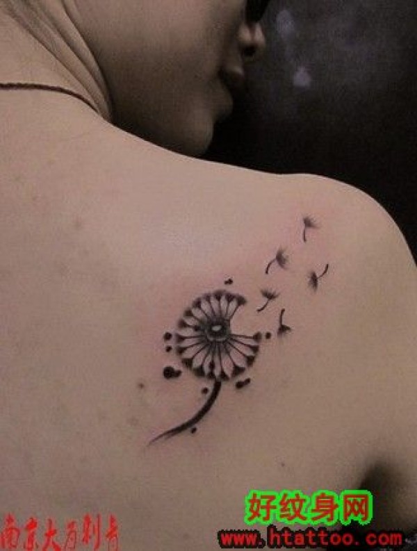 蒲公英纹身图案,他会飞的很远很远_后背纹身图案大全_纹身图吧