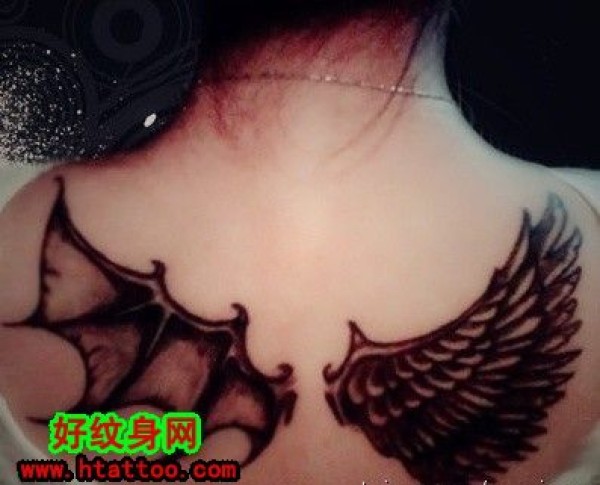 女生背部另类翅膀纹身_后背纹身图案大全_纹身图吧