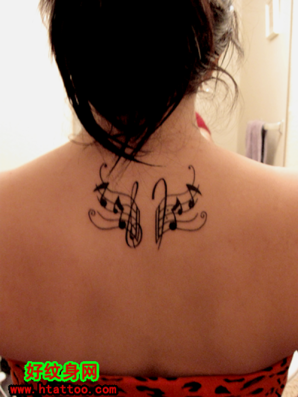 女生后背音符纹身_后背纹身图案大全_纹身图吧