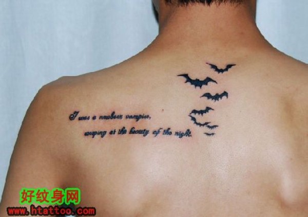 男生后背蝙蝠英文纹身_后背纹身图案大全_纹身图吧