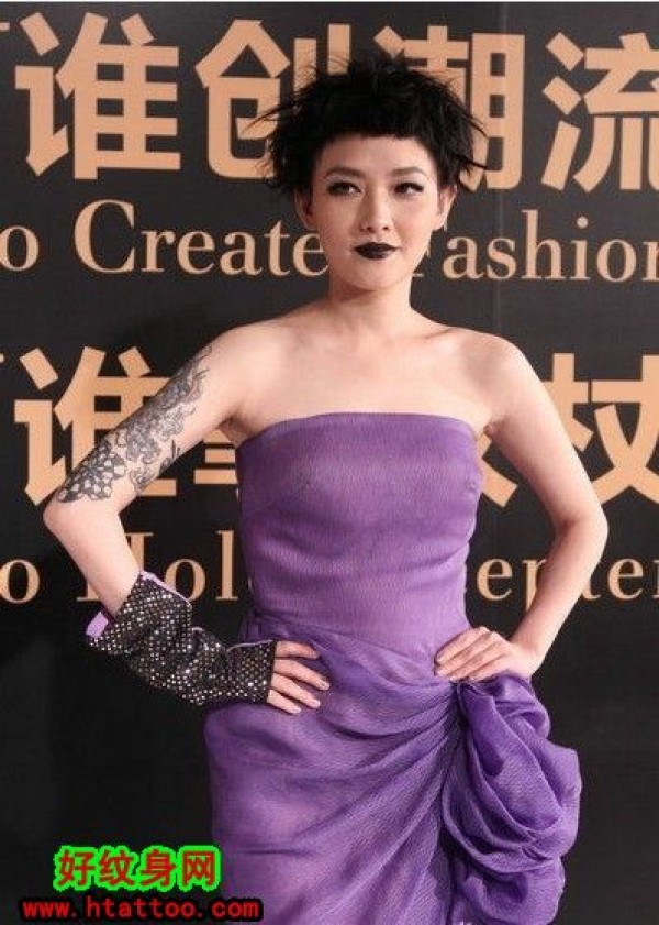 范晓萱手臂背部脚部另类纹身抢眼_后背纹身图案大全_纹身图吧