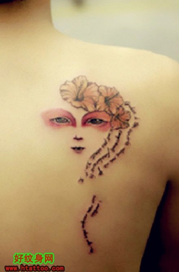 美女背部梅花纹身_后背纹身图案大全_纹身图吧