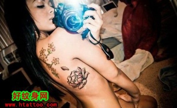 美女背部梅花纹身_后背纹身图案大全_纹身图吧