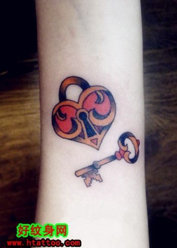 女生手臂心形锁钥匙纹身_后背纹身图案大全_纹身图吧