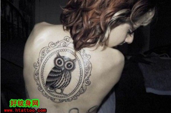 女生背部猫头鹰欧美个性纹身_后背纹身图案大全_纹身图吧