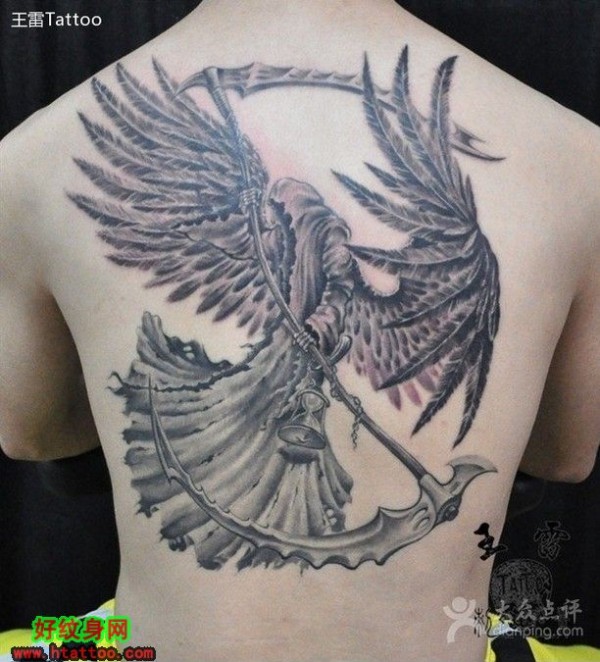 出自大师之手的后背上的黑白死神纹身图案_后背纹身图案大全_纹身图吧