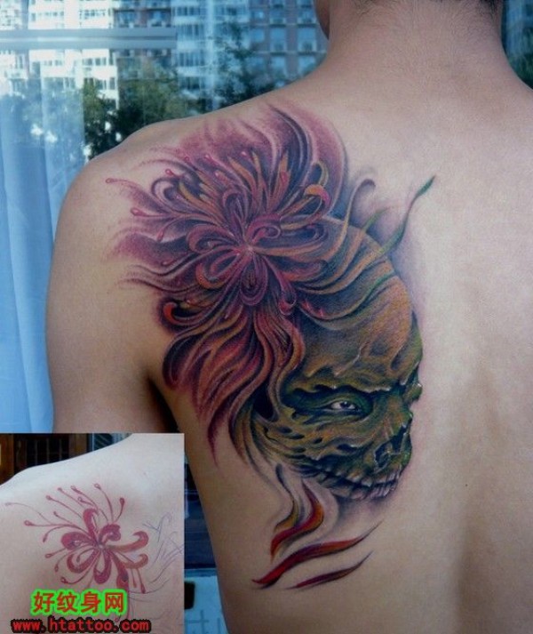 北京强子纹身作品之失败纹身修改添加骷髅组合_后背纹身图案大全_纹身图吧