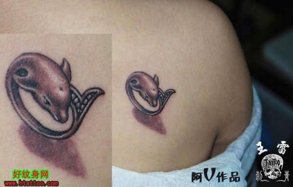 一款很萌很可爱的黑白灰小海豚纹身_后背纹身图案大全_纹身图吧