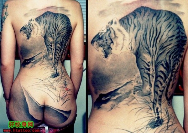 中国传统黑白国画类纹身上山虎纹身图案_后背纹身图案大全_纹身图吧