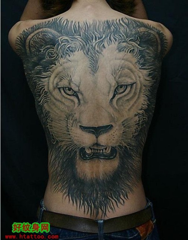 满背黑白大狮子,雄伟至极啊_后背纹身图案大全_纹身图吧