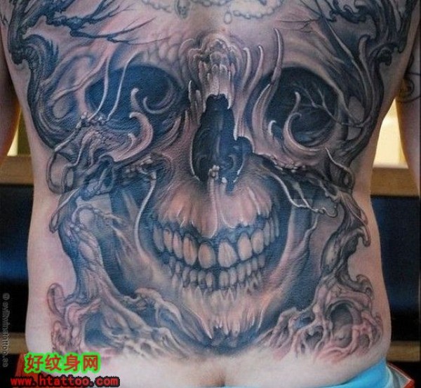 很有立体感的骷髅,瑞典一级纹身师作品_后背纹身图案大全_纹身图吧