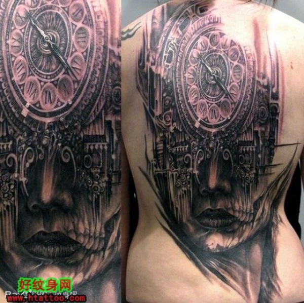 绝对的欧美风格后背时钟纹身_后背纹身图案大全_纹身图吧