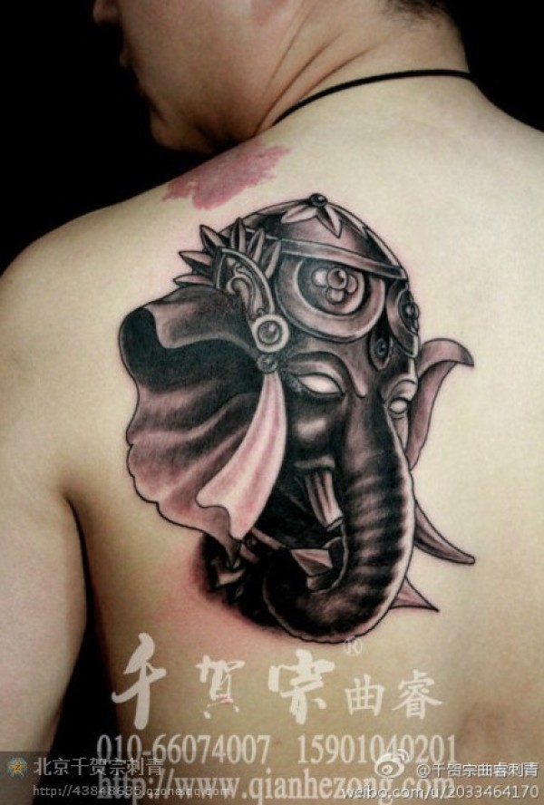 千贺宗黑白作品之象神_后背纹身图案大全_纹身图吧