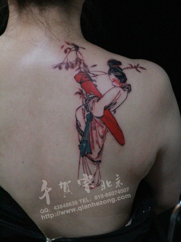 美女背上纹了个古代的美女,续续如生_后背纹身图案大全_纹身图吧