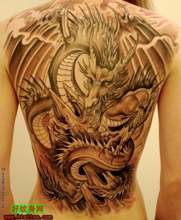 很有气势的飞龙满背纹身图案大全_后背纹身图案大全_纹身图吧