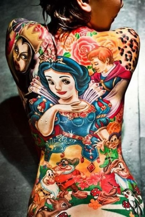 女性后背彩色纹身很像彩绘啊_后背纹身图案大全_纹身图吧