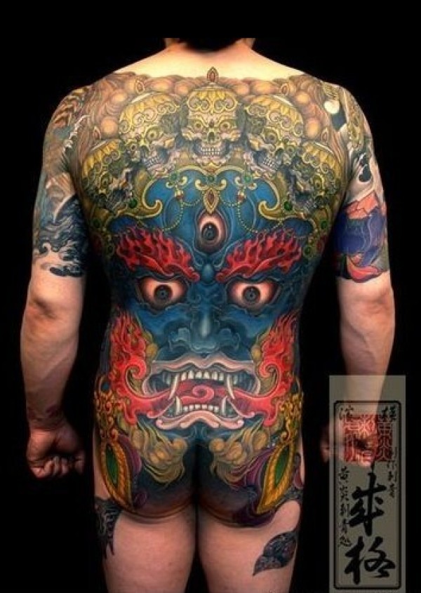 全彩唐狮纹身,帅爆整个纹身界_后背纹身图案大全_纹身图吧