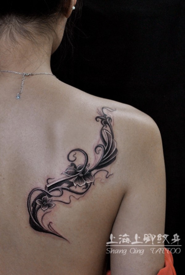 美女背部梅花纹身_后背纹身图案大全_纹身图吧