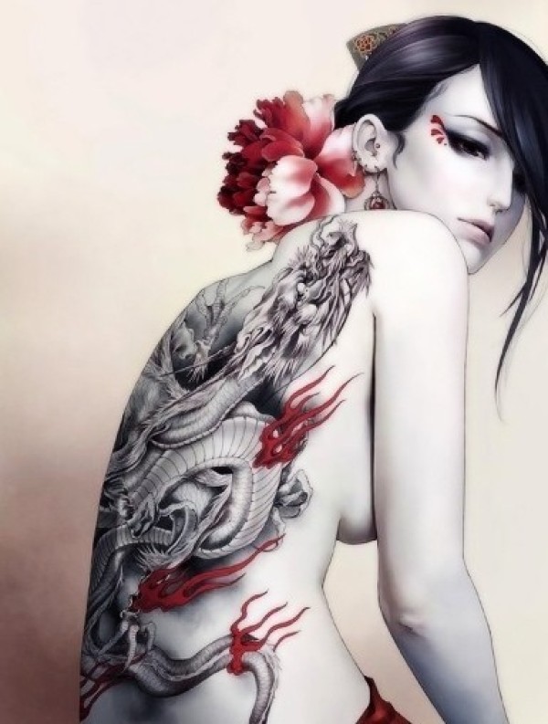 美女背上的龙纹身_后背纹身图案大全_纹身图吧