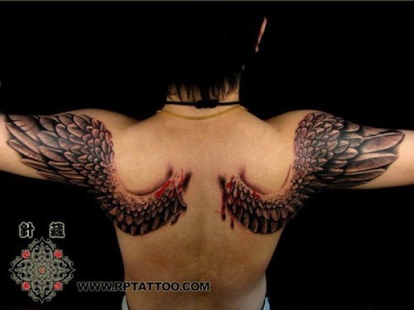 滴血翅膀_后背纹身图案大全_纹身图吧