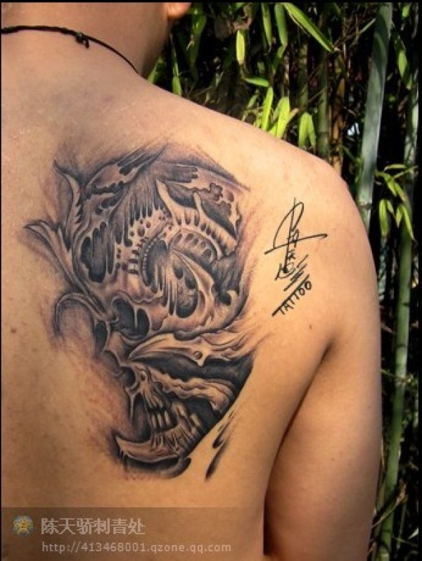 陈天骄打造机械骷髅_后背纹身图案大全_纹身图吧