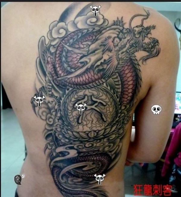 一组满背大气九龙拉棺纹身图案作品和手稿