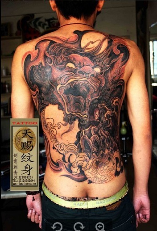 唐狮纹身图案_后背纹身图案大全_纹身图吧
