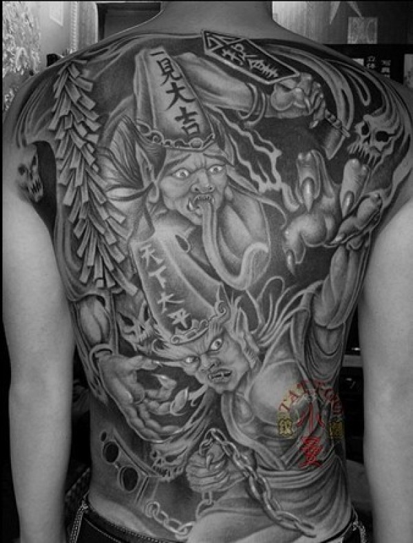满背黑白无常纹身_后背纹身图案大全_纹身图吧