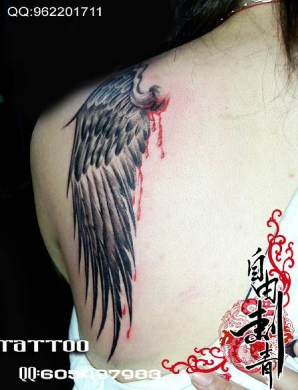 滴血翅膀纹身_后背纹身图案大全_纹身图吧