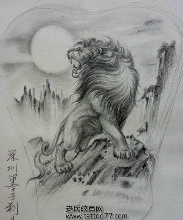 霸气的满背狮子纹身手稿_后背纹身图案大全_纹身图吧